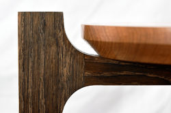 Made entirely of white oak, this table shows the range of possibilities when working with this medium. The top is quartersawn, which shows off the natural medullary rays. The base is oxidized with a natural finish, making its appearance darker.